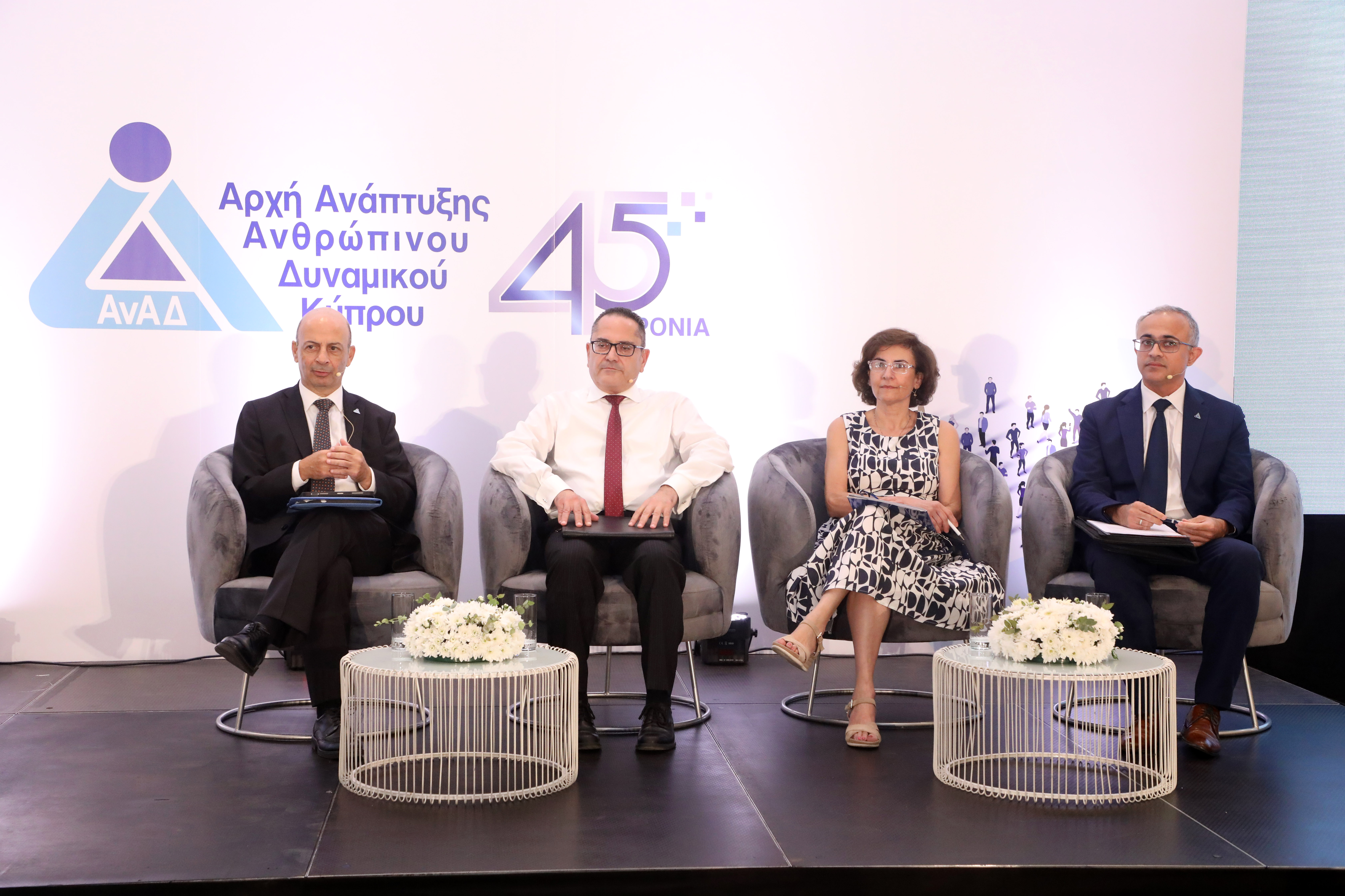 Ο Γενικός Διευθυντής της ΑνΑΔ, κύριος Γιάννης Μουρουζίδης, παρουσίασε τις εξελίξεις στις δραστηριότητες της ΑνΑΔ, με έμφαση στους βασικούς δείκτες της αγοράς εργασίας και τους στόχους για το 2030. Ο κύριος Μουρουζίδης αναφέρθηκε στην έλλειψη καταρτισμένου προσωπικού σε τομείς όπως ο Τουρισμός, τα Ξενοδοχεία και Εστιατόρια, η Υγεία, η Γεωργία, οι Κατασκευές, η Μεταποίηση και η Πληροφορική. Στόχος, όπως τόνισε, είναι η εξάλειψη της αναντιστοιχίας δεξιοτήτων μεταξύ εκπαίδευσης και αγοράς εργασίας και ο συνεχής εμπλουτισμός του ανθρώπινου δυναμικού της Κύπρου με τις κατάλληλες γνώσεις και δεξιότητες, ώστε να ανταποκρίνεται αποτελεσματικά στις διαρκώς μεταβαλλόμενες συνθήκες.